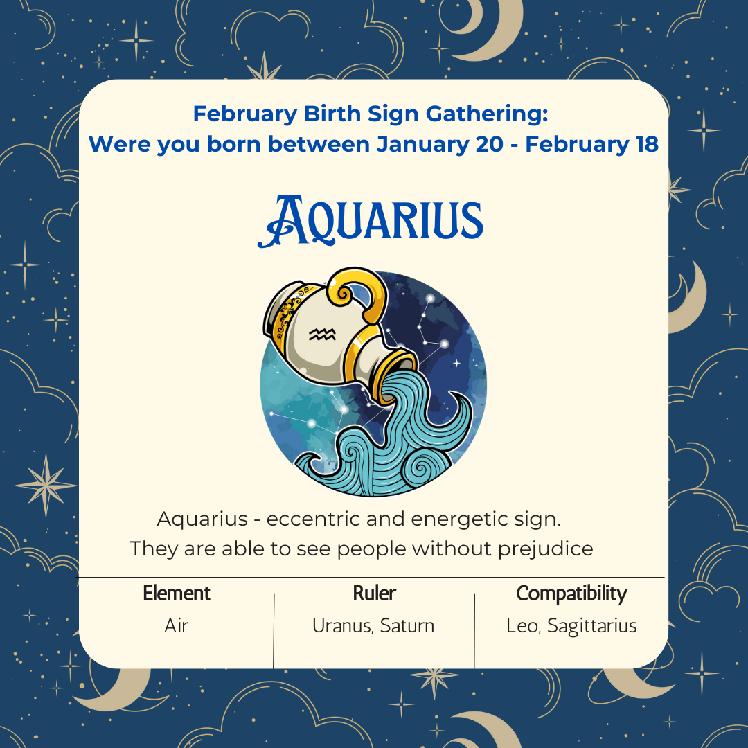 Gather and celebrate with other Aquarians to make new acquaintances and enjoy